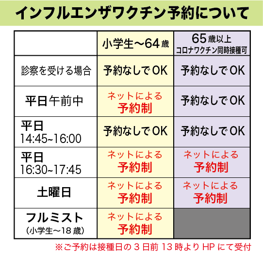 ご希望の方は接種ご希望の1週間ほど前にご予約ください(ワクチンは返品できないためご、予約後のキャンセルはできません)